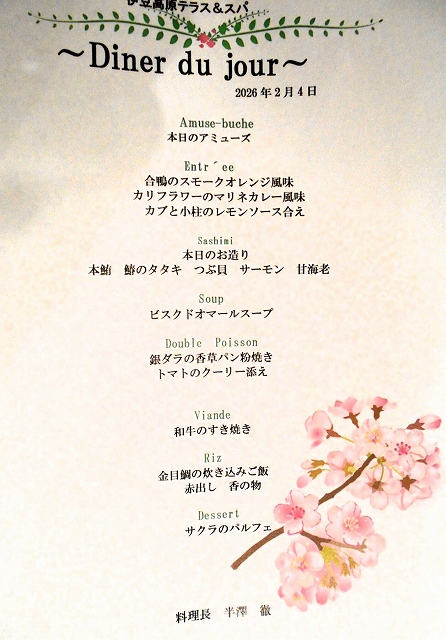 ディナー献立表(キャビア付き)